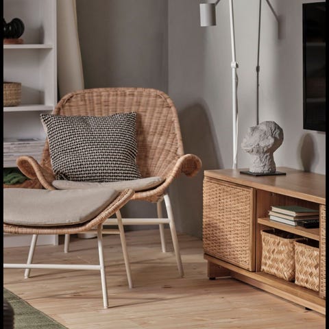 Två stycken öronlappsfåtöljer från IKEA med tillhörande fotpall. Sittdynorna har lite fläckar som säkert går att tvätta bort men i övrigt är de ganska fina.