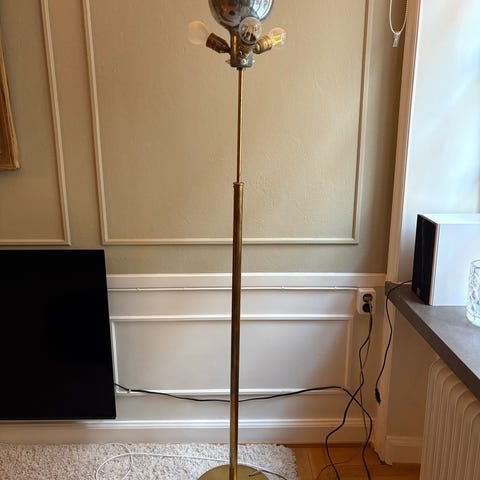 Svenskt Tenn Josef Frank bordslampa med vit skärm och fot i mässingsfärgad metall.