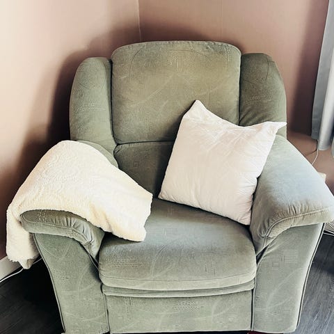 Fåtölj från Mio Möbler, försiktigt använd, lite smutsig på armstöden men går att tvätta bort.