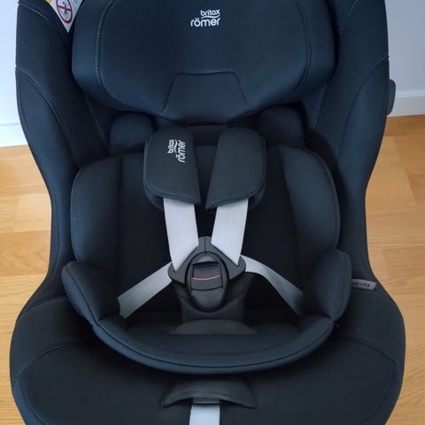 Britax Römer bilbarnstol i storlek 18 i grå färg. Bilbarnstolen är utrustad med intern sele och justerbart huvudstöd. Sitsen har vadderade sidostöd och extra kuddar för mindre barn. Stolen är monterad på en bas med stödben och har flera lutningslägen. Passar för montering i bil för transport av barn inom angiven storleksklass 18.