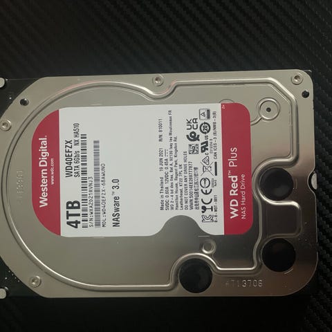Western Digital WD Red hårddisk med kapacitet på 6 TB. 3,5-tums intern hårddisk med SATA-gränssnitt, lämplig för lagring i dator eller NAS-system. Modellbeteckning WD60EFAX. Utformad för kontinuerlig drift i lagringslösningar med flera diskar.