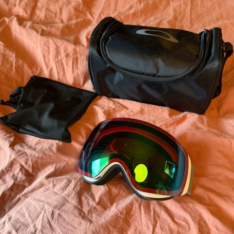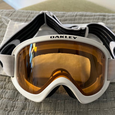 Oakley Prizm Flight deck L i väldigt bra skick! Skidglasögon med vit ram och orange spegelglas. Justerbart elastiskt band med Oakley-logga. Skidglasögonen täcker stort synfält och har skumvaddering runt ramen för bättre passform och komfort mot ansiktet.