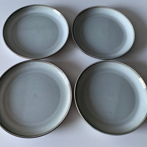 Åtta jättefina tallrikar från Höganäs, grå keramik.