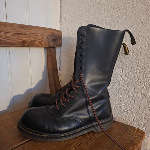 Snygga höga snörstövlar i äkta läder. Vinröd färg med svart snörning.