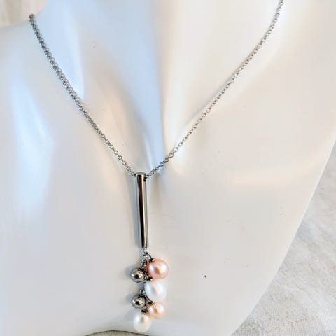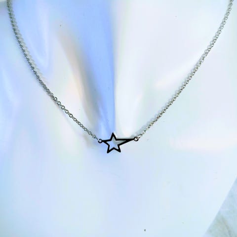 Fint stålhalsband med hänge framtill i form av små ringar,hänger på fin stålkedja