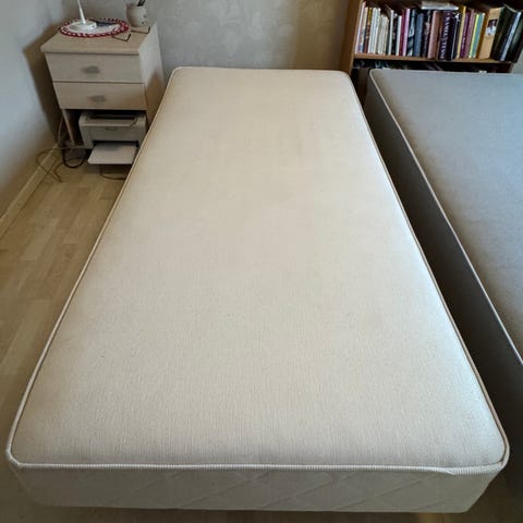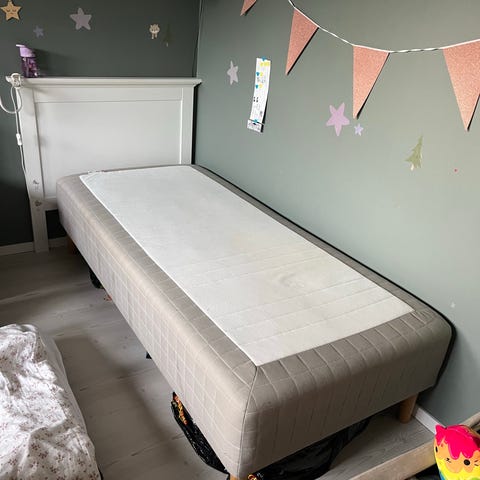 Sultan resårbotten och Tistedal bäddmadrass i bra skick. Fyra ben av trä ingår till resårbotten.