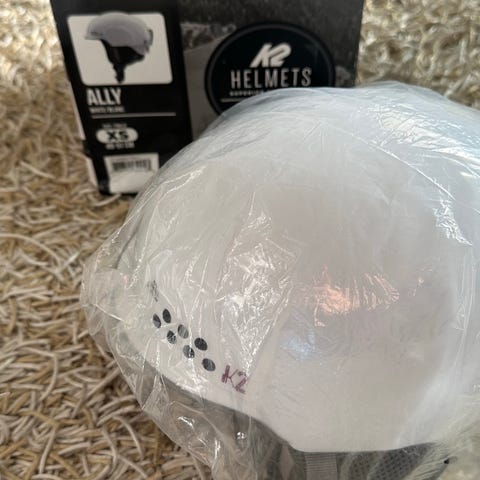 Finns i Rönninge men kan tas med till City och Stadshagen. Hjälmen är vit med svart med flera ventilationsöppningar. Invändigt finns vaddering och öronskydd för ökad komfort. Ytterskal i hårdplast med EPS-innerskal för stötdämpning.