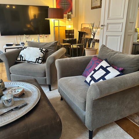 2 st fåtöljer från JIO möbler, modell Metropolitan. Köpta från Zandvoort. Mycket bra skick. Med nit detaljer. Avtagbar klädsel på ryggstödskudde och sitskudde.
