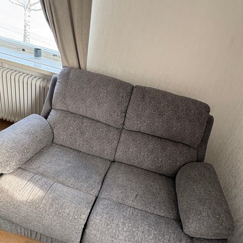 Säljer denna fina soffa. Tvåsitsig, mörkgrå med blommigt mönster, huvudkuddar. Väldigt bekväm att sitta i. Hade behållit den själv om jag bara haft plats för den! Inga fläckar eller skador på den. Djur och rökfritt hem. Billigare vid snabb affär. Hämtas på plats