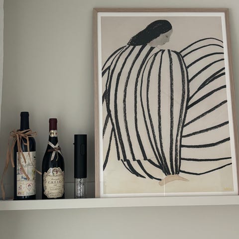 Akrylkollage som print av konstnären Emilia Ilke för Wall of Art. Emilia är född i Uppsala och utbildad på Gerlesborgsskolan i Stockholm 2014-2016. Hon har tidigare ställt ut på bla Riche, Liljevalchs Vårsalong, POM Gallery. Idag arbetar hon heltid som konstnär i Stockholm och hennes konst är inspiration från keramik, bruksföremål och skulptur. Motivet trycks på ett 200 grams Fine Art papper med varm ton och matt yta. Pappret är fsc-märkt och har en bas som ger god färgåtergivning. En träram i ek-imitation ingår.
