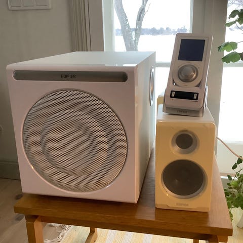 Vägghögtalare av bättre kvalitet. Kan monteras på vägg eller sättas på hylla.