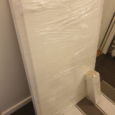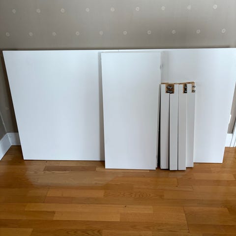 String skrivbordsskiva som spruckit lite på sidorna, går fint att använda ändå