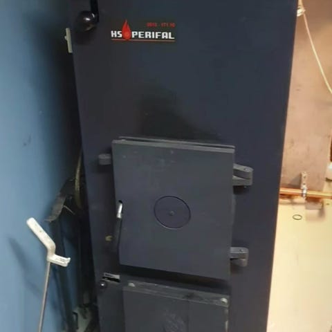 Egor pannpanna i stål, blå färg. Pannan är avsedd för uppvärmning av vatten i värmesystem. Fronten har flera luckor för eldning och sotning samt manometer och reglage. På baksidan finns anslutningar för rör och brännare. Informationsskylt med tekniska data sitter på sidan av pannan från AB Egnahemsvärme i Hässleholm. Lämplig som värmepanna i villa eller mindre fastighet där vattenburet värmesystem används.