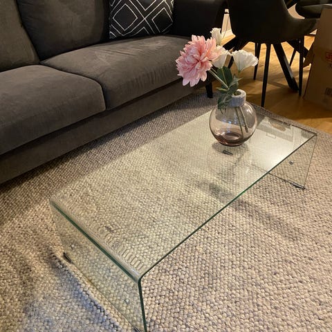 Ovalt glasbord/plexiglas