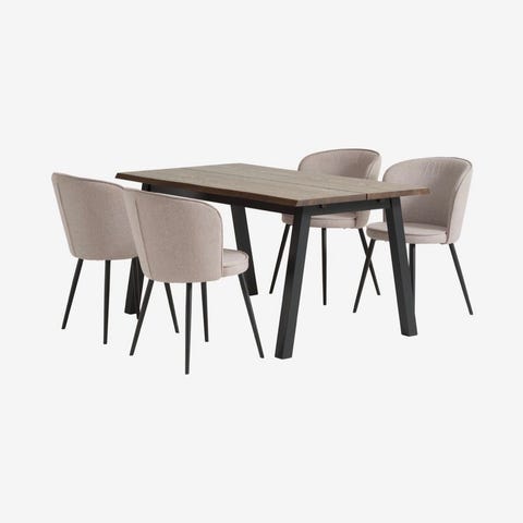 Säljer svart köksbord med 4 stolar i grå sammet. 1 st 180 säng grå med grå gavel, 2 st vitrinskåp svarta, 1 st hörnsoffa svart..