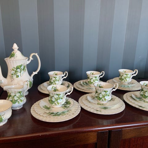 Royal Albert Flower of the Month- komplett serie 12 koppar med fat