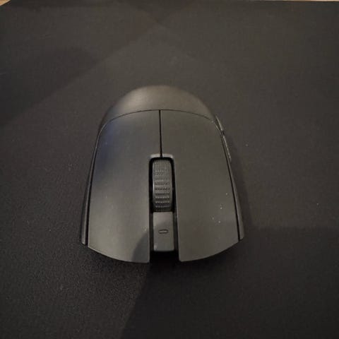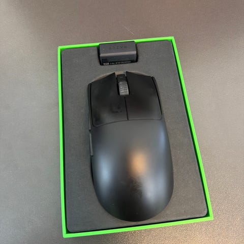 BenQ Zowie EC2-CW datormus i svart färg. Trådlös modell med scrollhjul och sidoknappar. Undersidan har glidytor och sensor placerad centralt. Levereras med originalförpackning och tillbehör enligt bild, inklusive ladd-/mottagardocka och extra musfötter.