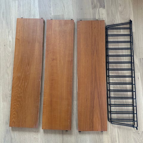 String hylla i teak med svarta gavla