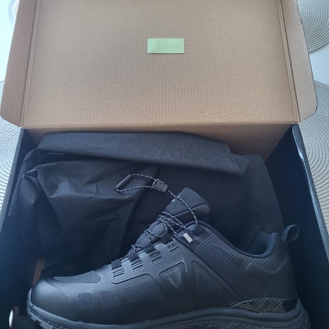& Other Stories sneakers i storlek 39. Modellen är låg och i svart färg med snörning framtill. Ovandel i textil och syntet med perforerade detaljer för ventilation. Sulan är kraftig med mönstrad yttersula för grepp. Passar till vardagsbruk och promenader.