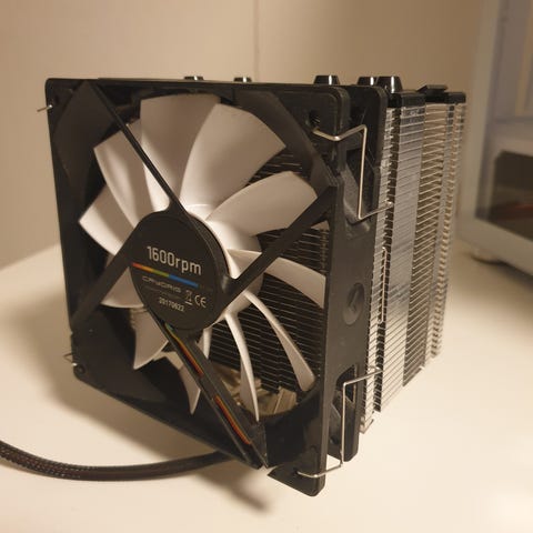 Asymmetrisk design → inga problem med hög RAM. Fungerar utmärkt med Ryzen/Intel. Komplett med originalförpackning, monteringssats och skruvmejsel.