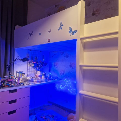 Sängen är målad runtom av en 10 åring och behöver målas om