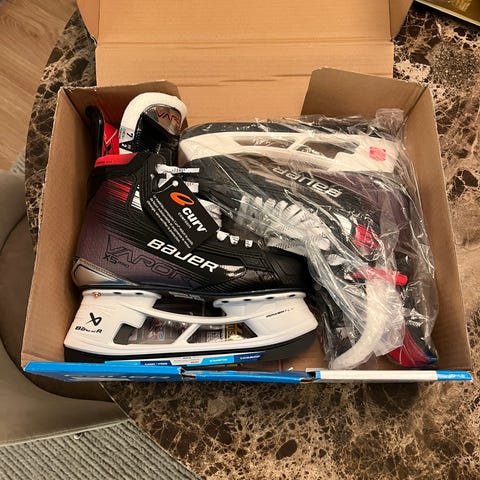 Helt nya S25 Vapor FLY XLTX storlek 44.5 säljes. Ordinarie pris 3599 kr. Riktigt bekväm skridsko som går att forma/baka efter foten. Även utbytbara skenor.