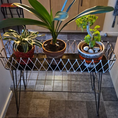 Äldre blombord med glasskiva