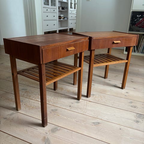 2 st Sängbord i trä/rotting /bambu i kontinental halvgammal stil .