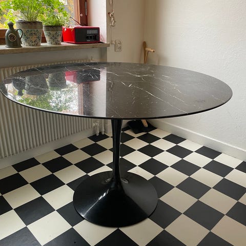 Bordet är stabilt och i fint skick. Inga sprickor i glasskivan, endast mycket små bruksspår.