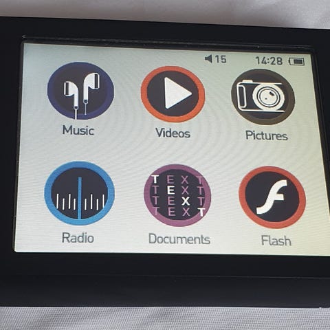Enheten har 3,5 mm hörlursutgång. Medföljer skyddsfodral i konstläder som omsluter spelaren för extra skydd vid användning och transport.