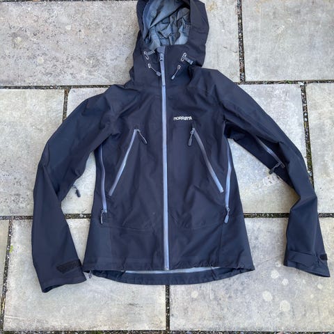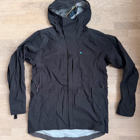 Jackan är svart och tillverkad i Gore-Tex-material. Modellen har fast huva med dragsko, hel dragkedja framtill och flera fickor, bland annat innerficka med dragkedja.