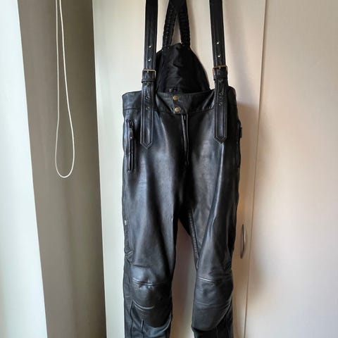 Halvarssons skinnbyxor med vattentätt innermembran (avtagbart), höft- och knäskydd (justerbara), storlek 50. Femficksmodell, dragkedja för sammankoppling med jacka, dragkedjor för öppning kring vaderna. Använda två gånger, i nyskick. Säljes då ägaren tyvärr fått nytt midjemått. Nypris drygt 4 K, säljes för 1600 SEK.