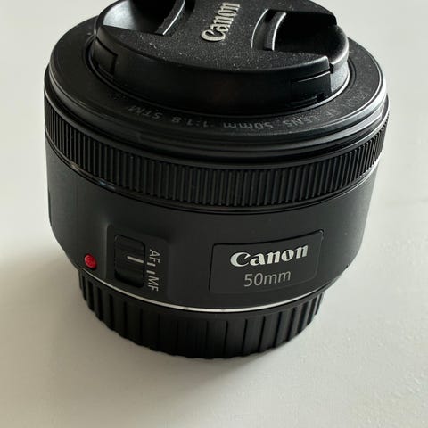 Canon EF 50mm f/1.8 STM objektiv i svart. Fast normalobjektiv med brännvidd 50 mm och största bländare f/1,8. Utrustat med STM-autofokusmotor för tyst och snabb fokusering. EF-fattning som passar Canons systemkameror med motsvarande objektivfattning, både fullformat och APS-C. Lämpligt för till exempel porträtt, vardagsfoto och fotografering i svagare ljus tack vare den stora bländaröppningen.