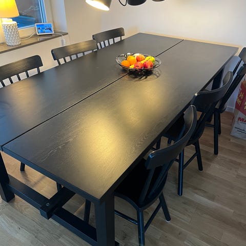 Stolarna ingår om man vill/bortskänkes med bordet.