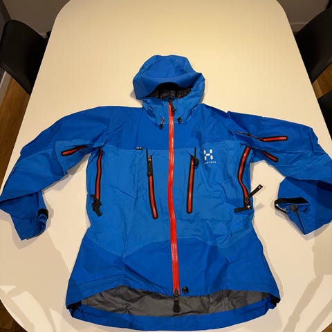 Haglöfs jacka för dam i storlek M. . Modellen har huva, hel dragkedja framtill samt flera fickor med dragkedja. Passar som ytterjacka för olika utomhusaktiviteter. Skaljacka för skidåkning.