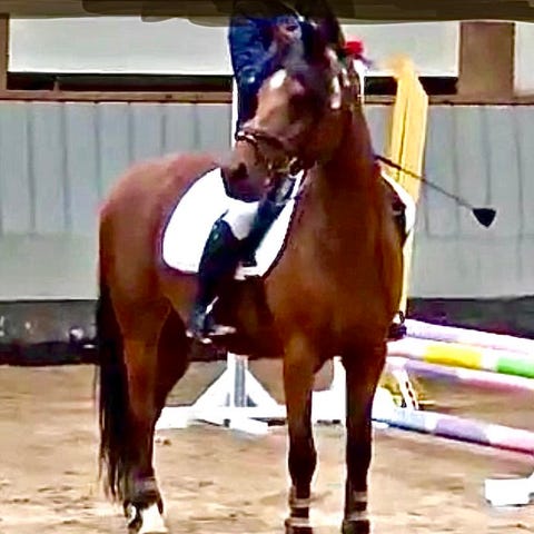 Super trevlig & go herre i hagen & boxen. Kan va själv inne när kompis rids ut.