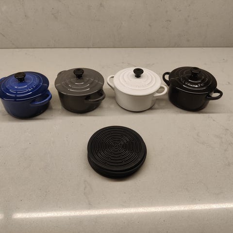 Le Creuset pajform i stengods. Formen är rund med vågig kant, vit glaserad insida och blå utsida. Passar för tillagning av pajer, gratänger och andra ugnsrätter. Kan användas i ugn och är lämplig att ställa direkt på bordet för servering.