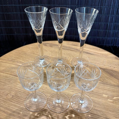 Sex coupeglas med stjärnor graverade