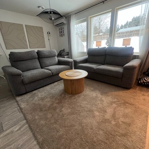Säljer nu vår kompletta och superbekväma soffgrupp från serien Cantus. Gruppen består av en 3-sits soffa, en 2-sits soffa och en fåtölj. Möblerna köptes för bara en månad sedan och säljs nu enbart på grund av ändrade planer för möbleringen. Allt är i absolut nyskick!