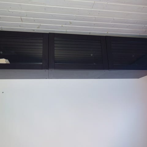 Bestå hylla med glasdörrar