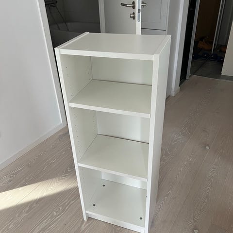 Säljer en välvårdad BILLY bokhylla i vitt. Det är en av IKEAs mest praktiska och tidlösa möbler som slukar mycket förvaring utan att ta upp för mycket plats i rummet. Denna modell är den lite lägre varianten, vilket gör att även ovansidan fungerar utmärkt som avlastningsyta för dekoration eller lampor.