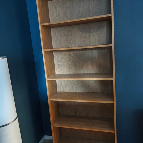 Bokhyllan är i gott skick och hyllplanen är flyttbara så att du kan anpassa höjden efter dina böcker eller mappar.
