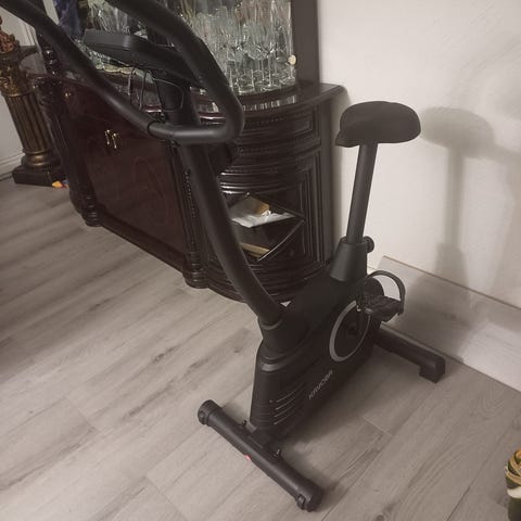 Kayoba motionscykel. Utrustad med display som visar bland annat tid, hastighet, distans, kaloriförbrukning och puls. Cykeln har justerbart säte och styre. Passar för inomhusträning och konditionsträning i hemmet.