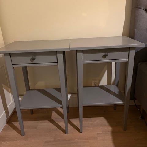 Väldigt enkel och fin. Passar som avlastningsbord och sängbord för högre säng.