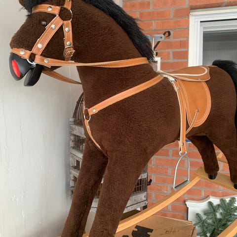 Vagnen och häst har skavanker. Jag har fotat dom på bilderna. Bla så är det en sele som inte fäster som den ska, några "skavmärken" och ryggstöd och sidostöd på vagnen har limats på.