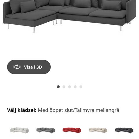 Ikea Söderhamn soffa från IKEA med grön loose fit klädsel från Bemz. En 3-sits sektion och 1 schäslong med armstöd på båda sidor. Nypris ca 20 000 för soffa och klädseln. På tre ställen har dragkedjorna till dynorna gått sönder, men någon händig person kanske löser det eller väljer att sy fast dem istället :)