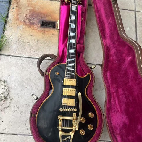 Gibson Les Paul Custom elgitarr i svart utförande med guldfärgad hårdvara.