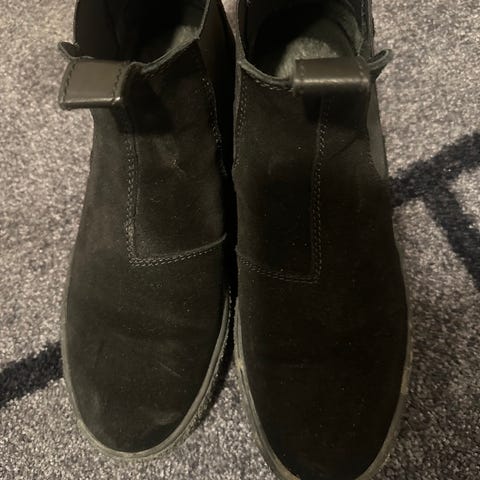 Vagabond sneakers i herrmodell, storlek 45. Skorna är svarta och tillverkade i mocka med snörning framtill. Yttersula i gummi med mönstrad undersida. Modellen är ankelhög och passar för vardagsbruk och casual klädsel.