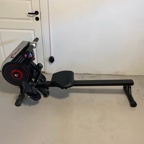 Roddmaskin med luftmotstånd och inbyggd träningsdator. Utrustad med justerbara fotstöd med remmar, glidskena med rullande sits och draghandtag framtill. Träningsdatorn visar grundläggande träningsdata som tid och distans. Passar för inomhusträning av kondition och styrka för både över- och underkropp.