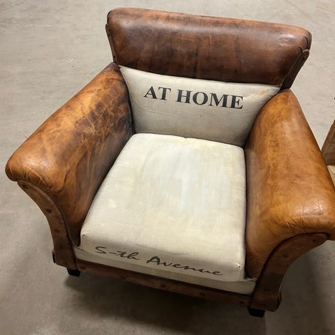 Handgjord fåtölj i metall med industriell känsla. Ytan är ojämn och har en rå, patinerad finish i grå metalltoner. Rak rygg och armstöd ger en kubisk form. Passar exempelvis som accentmöbel i vardagsrum, hall eller offentliga miljöer med industriell eller rustik inredningsstil.